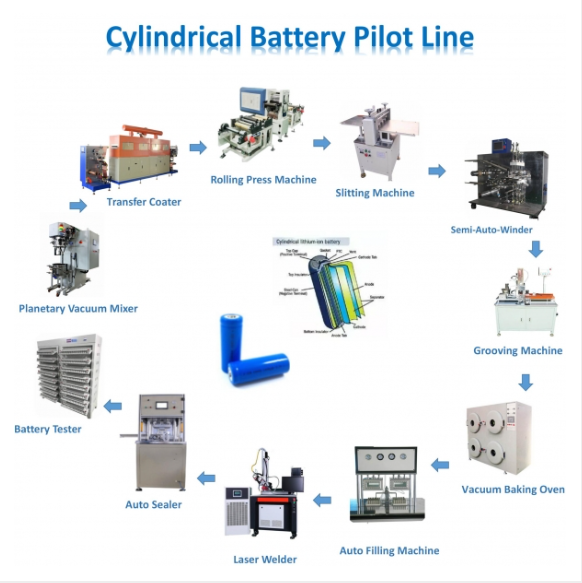 Экспериментальная пилотная линия по производству цилиндрических литиевых батарей является ключевым оборудованием, используемым для исследования и разработки технологии производства цилиндрических литиевых батарей, в основном для предварительного производства и тестирования батарей.